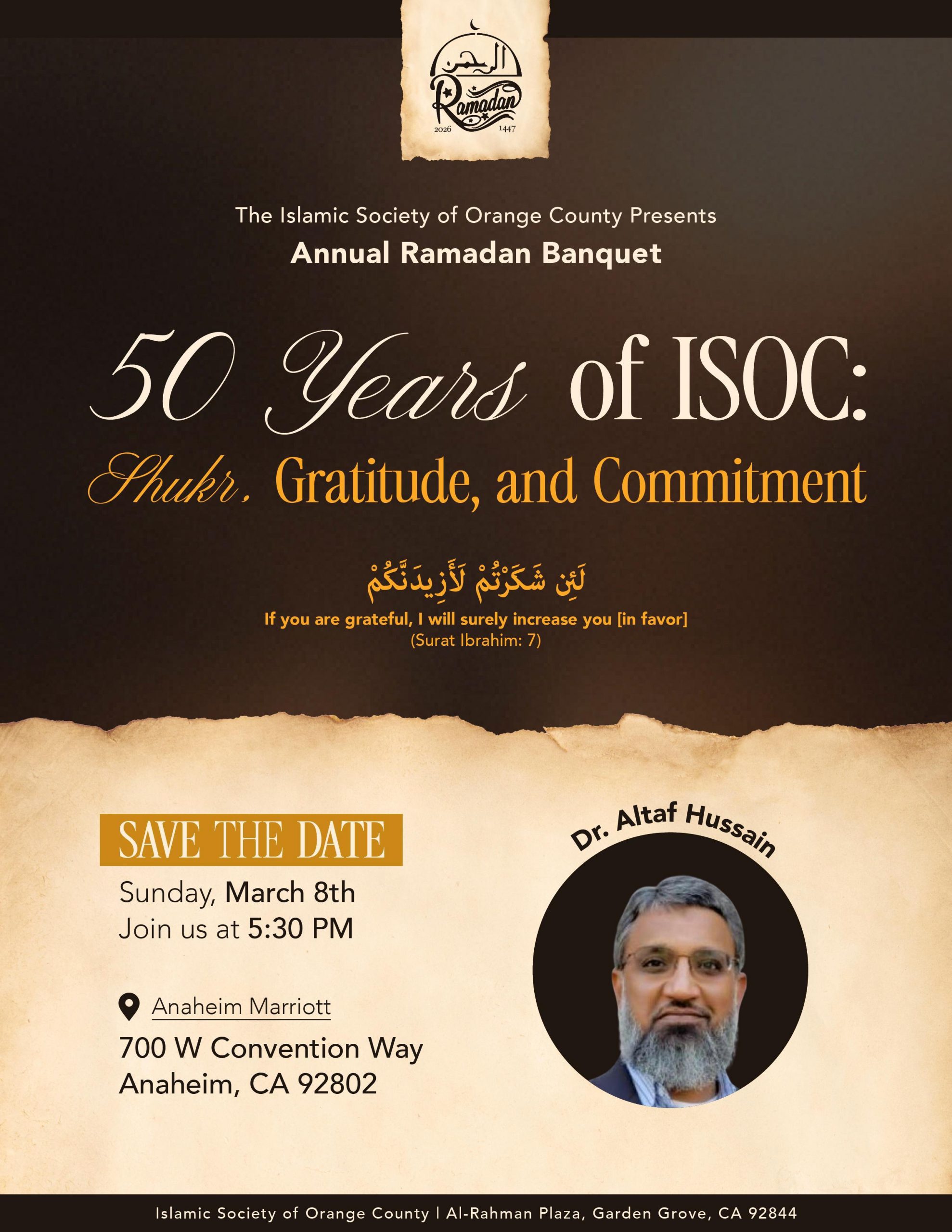 50 Years of ISOC: Annual Ramadan Banquet ** SAVE THE DATE ** + Add to Google Calendar + iCal / Outlook export 00 days 00 hours 00 minutes 00 seconds