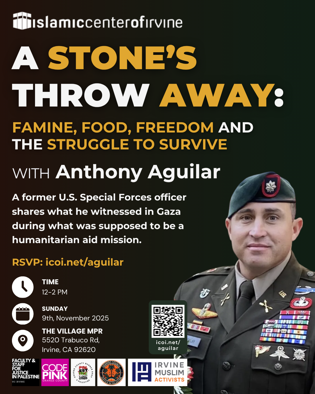 Hear Aguilar’s gut-wrenching testimony of forced famine, displacement, and genocide masquerading as aid, as he shares the story of Amir, a child victim of aid distribution centers in Gaza. Aguilar will also offer his insights on strategies for moving forward as a community in light of the current political climate.