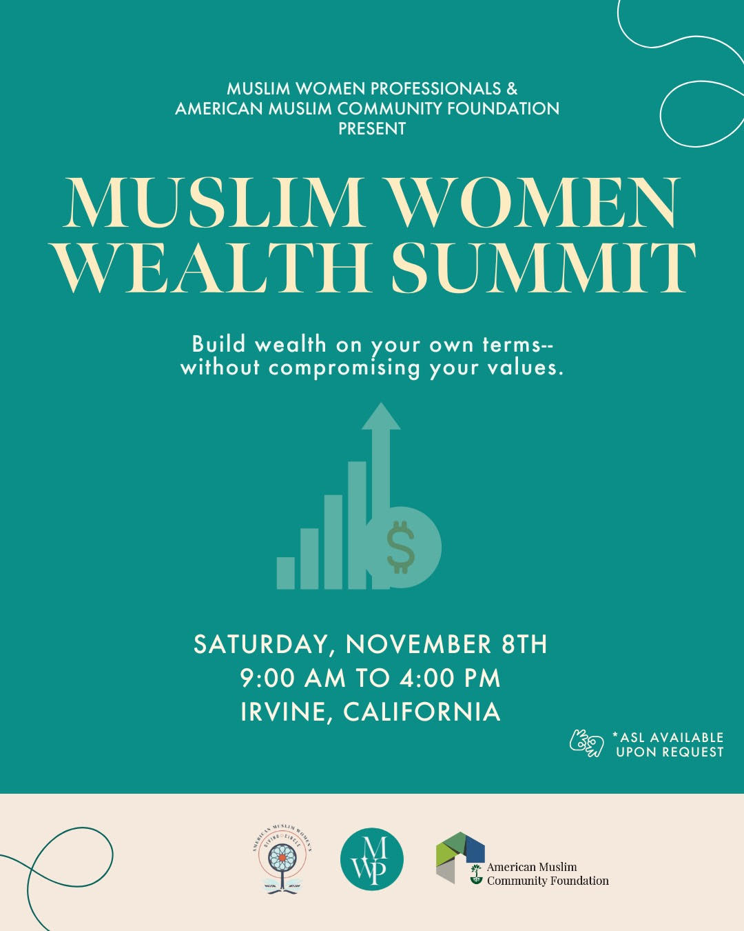 Join the Muslim Women Wealth Summit on Saturday, November 8 in Irvine, CA, presented by the American Muslim Community Foundation (AMCF) and Muslim Women Professionals (MWP). This empowering in-person event brings together Muslim women from across the country to explore faith-based approaches to building confidence, growing wealth, and strengthening community impact.