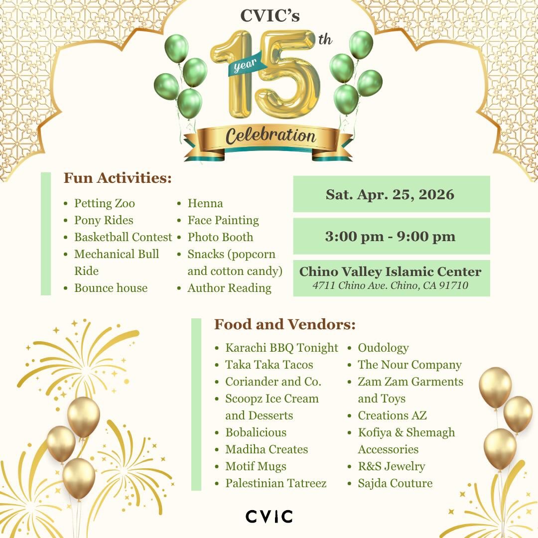 We wanted to thank you for your support all these years. Thanks to you, CVIC will be celebrating its 15 year Anniversary! We’d love for you all to attend! We have a variety of fun activities and food vendors. Don’t forget to share with your friends and family! See you there!
