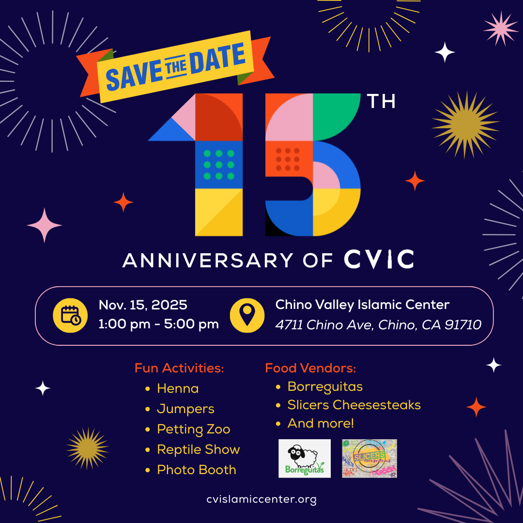 We wanted to thank you for your support all these years. Thanks to you, CVIC will be celebrating its 15 year Anniversary on November 15, 2025! We’d love for you all to attend! We have a variety of fun activities and food vendors. Save the date and don’t forget to share with your friends and family! See you there!