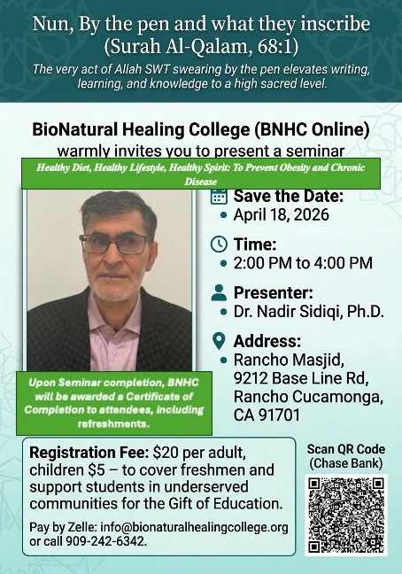 Payments can be made via Zelle to info@bionaturalhealingcollege.org or by email registration info@bionaturalhealingcollege.org Subject Seminar April 18, or by phone at 909-242-6342