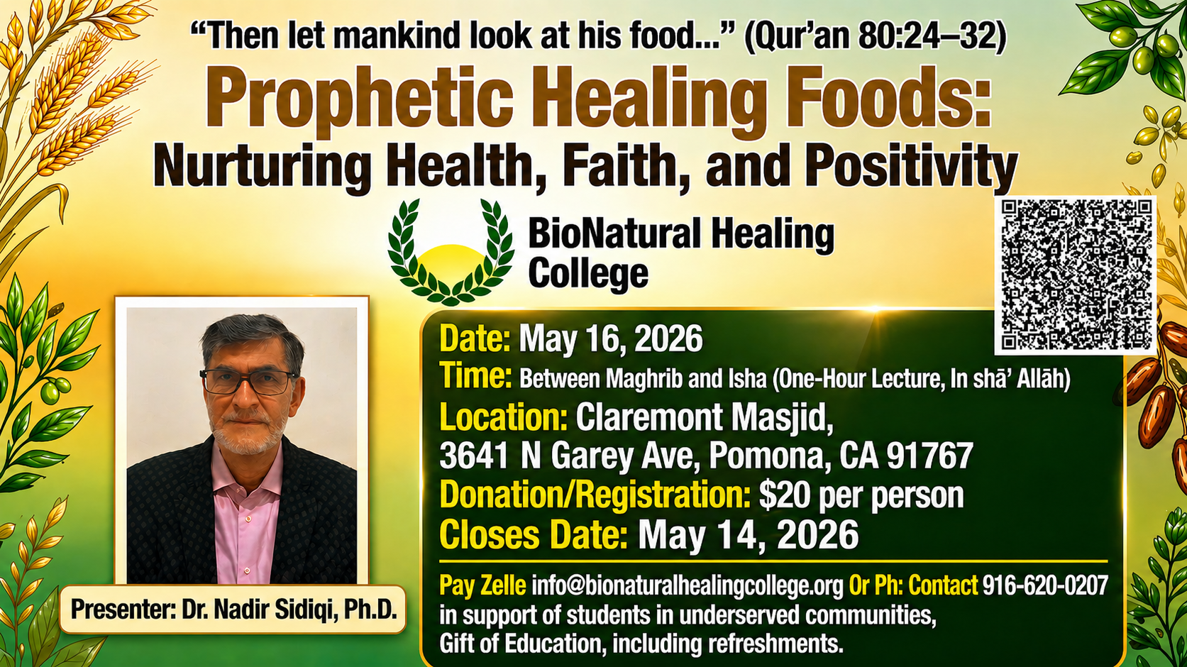 Payments can be made via Zelle to info@bionaturalhealingcollege.org or by email registration info@bionaturalhealingcollege.org Subject Seminar May 16, or by phone at 909-242-6342
