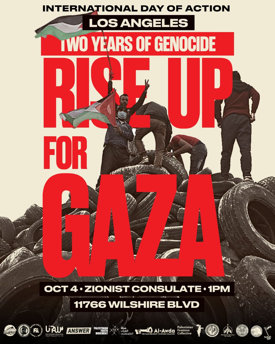 Two Years of Genocide in Gaza with no end in sight. On October 4th, we march for over 700 days of resistance in Gaza, where our people face tanks, missiles, and starvation, and still stand unbroken. We march knowing that the US, Canada, Europe, and Arab regimes are partners in genocide.