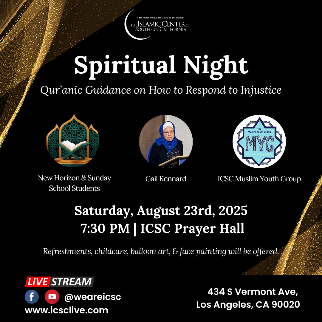 The program includes Maghreb prayer, Qur’an recitations, refreshments, childcare, and a balloon artist with face painting. We will have a special guest speaker Gail Kennard who will enlighten us on “Qur’anic Guidance on How to Respond to Injustice”.